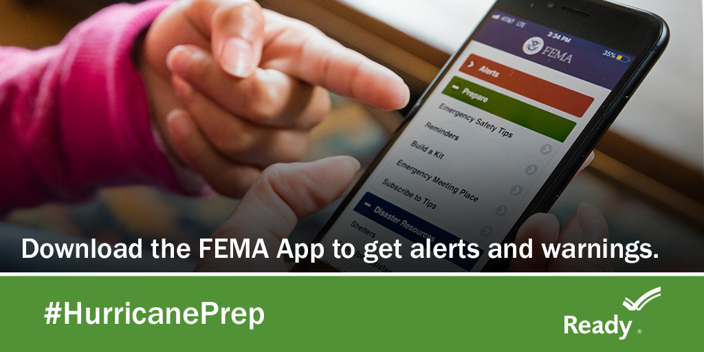 Download the FEMA app to get alerts and warnings. #hurricaneprep